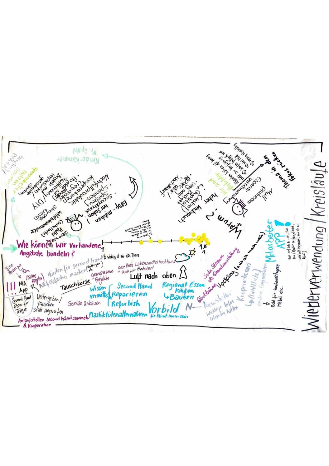 In einem partizipativen und kollaborativen Kreativprozess entstanden inspirierende Plakate zu zentralen Handlungsfeldern nachhaltiger Entwicklung (Klimaschutz, Wiederverwendung & Kreisläufe, Arbeitsbedingungen der Mitarbeiter*innen, Unternehmenskultur, Tierwohl uvm.), deren Inhalte in die Erarbeitung und Umsetzung unserer Nachhaltigkeitsstrategie mit einfließen.